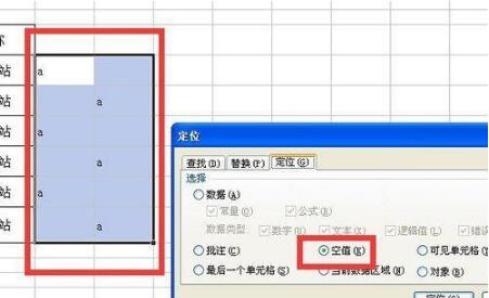 5、选择刚刚填充的数据,CTRL+G打开定位对话框,在定位条件中选择“空值”