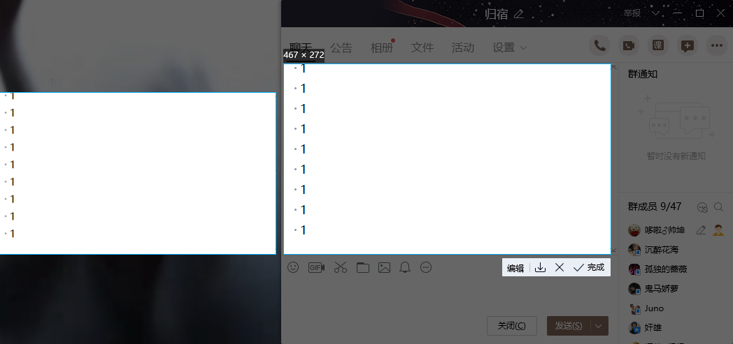 五、截图完毕,点击下方的【完成】就会自动加载到发送界面。