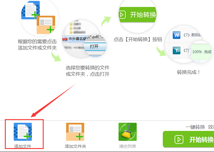 第三步,点击软件页面左下方的【添加文件】按钮,把需要转换为PPT的Word文档添加进来。