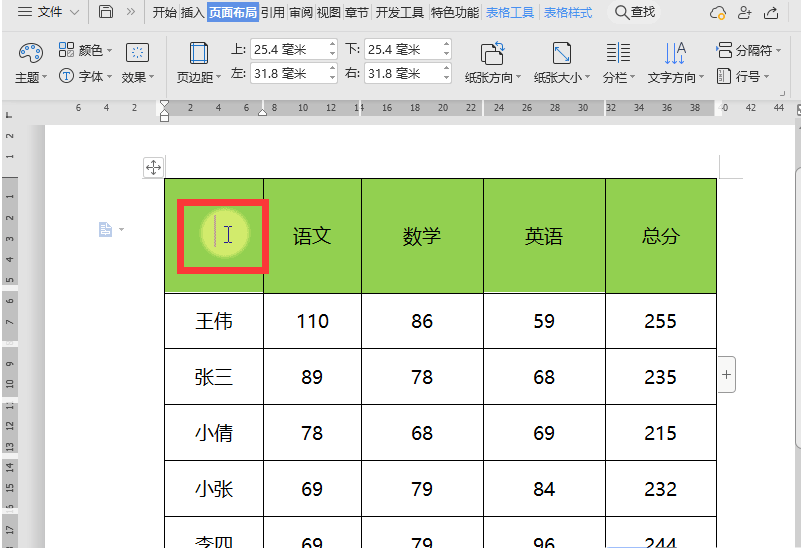 第一步,打开需要绘制斜线表头的Word文档,双击需要进行绘制斜线表头的单元格。