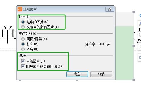第四步、在弹出的压缩图片对话框中,根据自身需求进行调整,再点击“确定”;