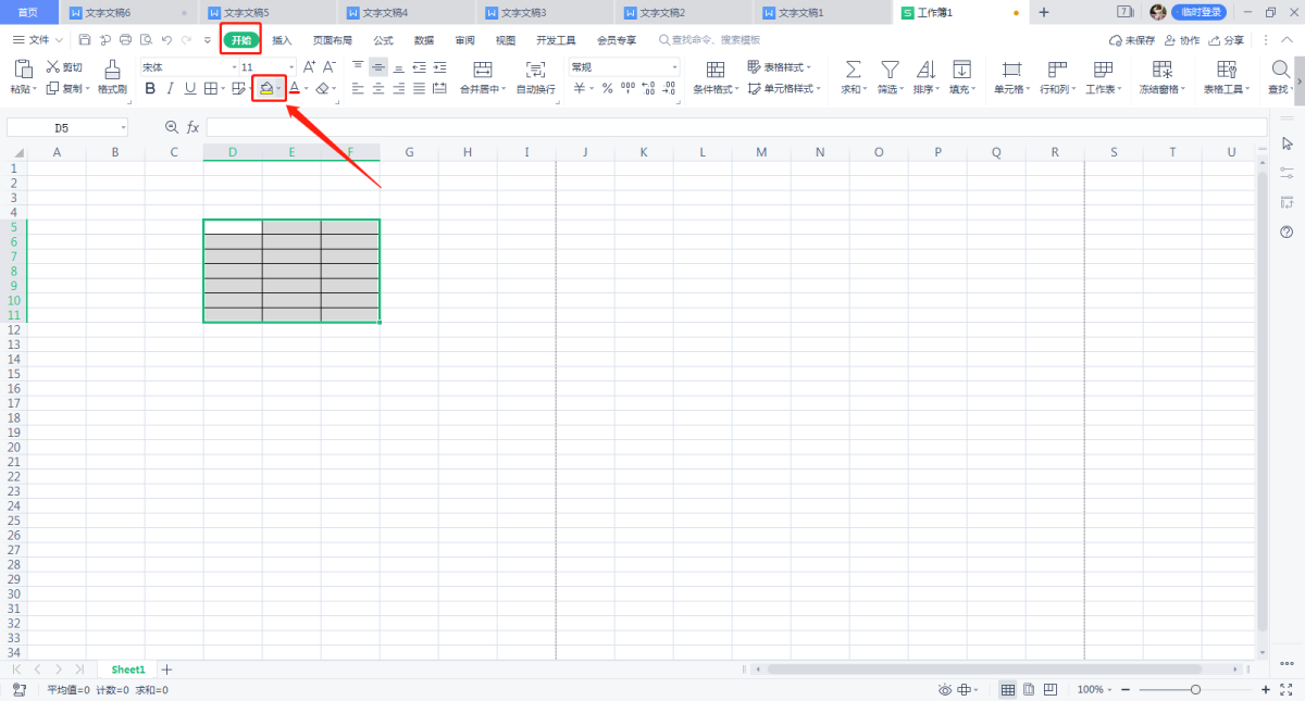 第二步,在菜单栏选择开始选项,进入功能区选择填充颜色;