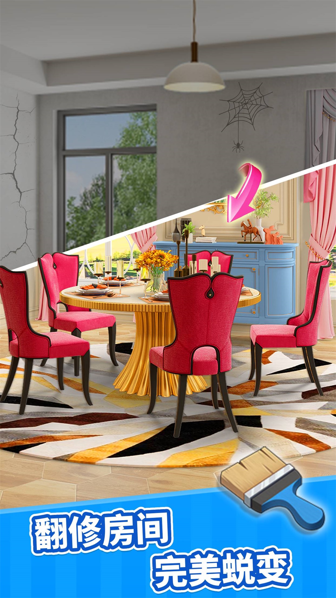 1.容易上手:游戏玩法简单易懂,没有复杂的内容,拖拽合并收集物件,进行家居设计,帮助你爱上家装