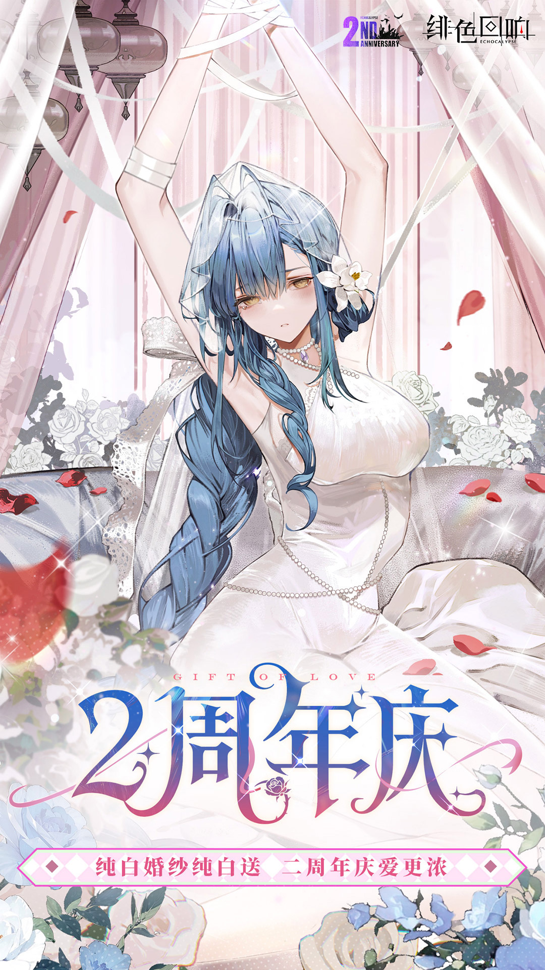 纯白婚纱纯白送,二周年庆爱更浓!《绯色回响》2周年庆,七日签到领婚纱,更有拉格娜皮肤和抽数好礼相送!