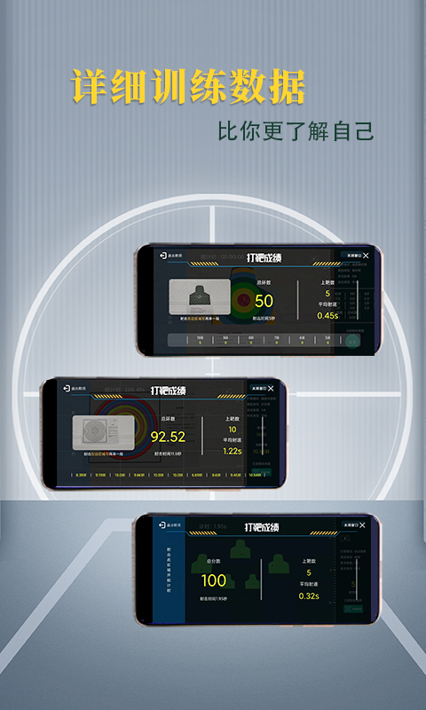 —创新AI智能算法,App与硬件之间便捷交互,只要一台手机,几平方米,就能打造专属你的射击训练场。手机对准预设靶纸,搭配任意激光头,不限产品、造型,便能进行专业射击训练。