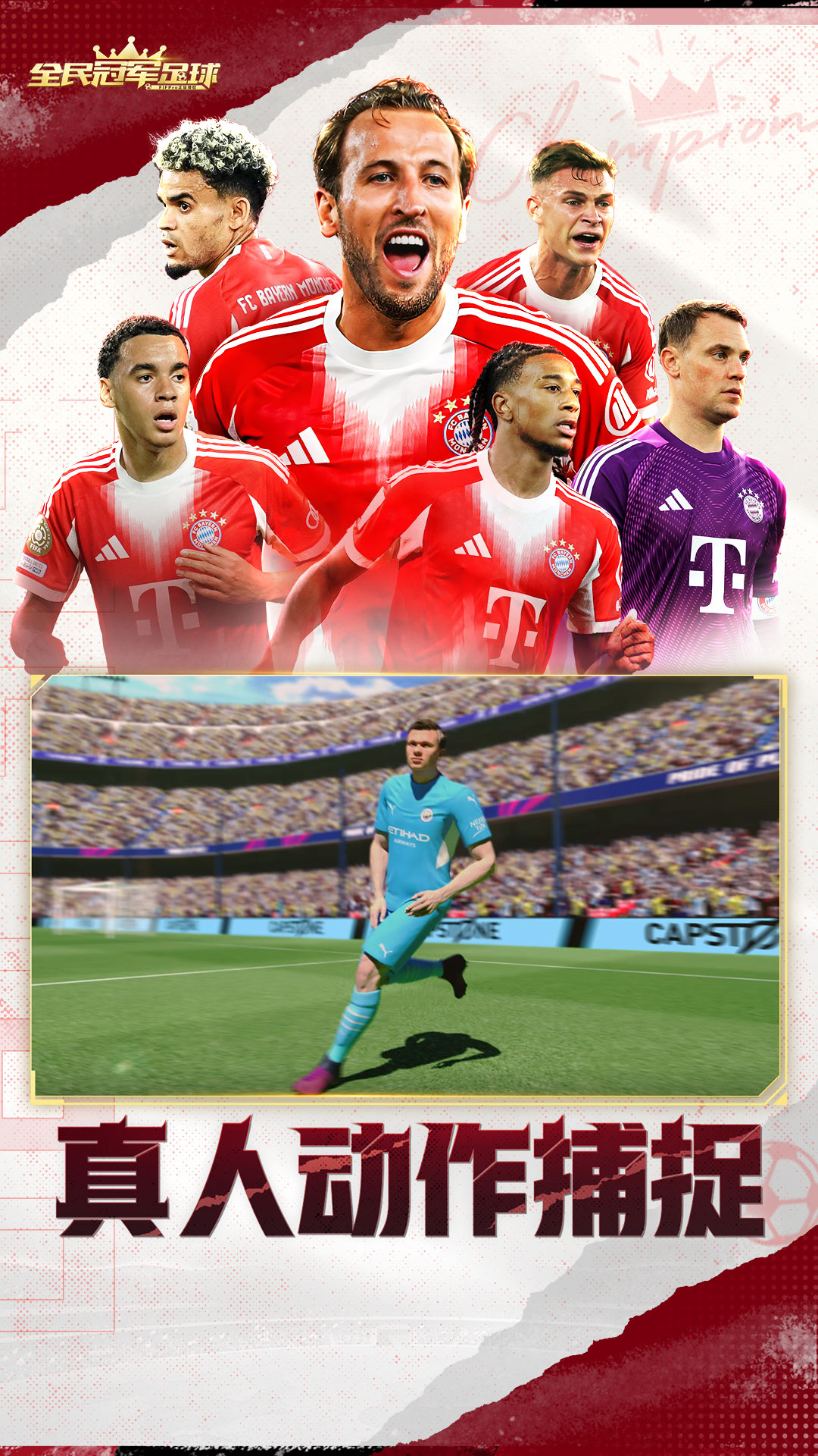 《全民冠军足球》是由FIFPro官方正版授权的一款策略经营足球游戏,拥有2000+名真实球员实名登场。游戏采用全球领先的惯性与动作捕捉技术以及真实球员参与动作录制。除球员外,还摇拥有皇马,拜仁等多家豪门俱乐部的授权。游戏独创了”英雄时刻”玩法,让玩家体验亲临比赛现场般的操作感受,是一款真正为全世界足球爱好者量身定制的高品质足球手游。