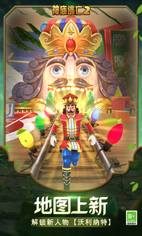 《神庙逃亡2》是一款3D建模写实风格的跑酷类休闲手游。《神庙逃亡2》游戏背景设定在神庙里,玩家要逃脱恶魔守卫的追赶,穿越神庙夺取神像。是由Imangi Studios、LLC制作,由乐逗游戏代理发行的角色扮演运动类冒险游戏。全球海量玩家都在玩, 这是一条怎么跑都跑不完的路程,但是却也给人一种希望,也许出口,也许胜利就在前方,只要我们坚持不懈,终会到达希望的港口,胜利的彼岸!所以你还在等待什么呢?如果你够胆的话就拿起手机跟我踏上逃亡之旅吧!