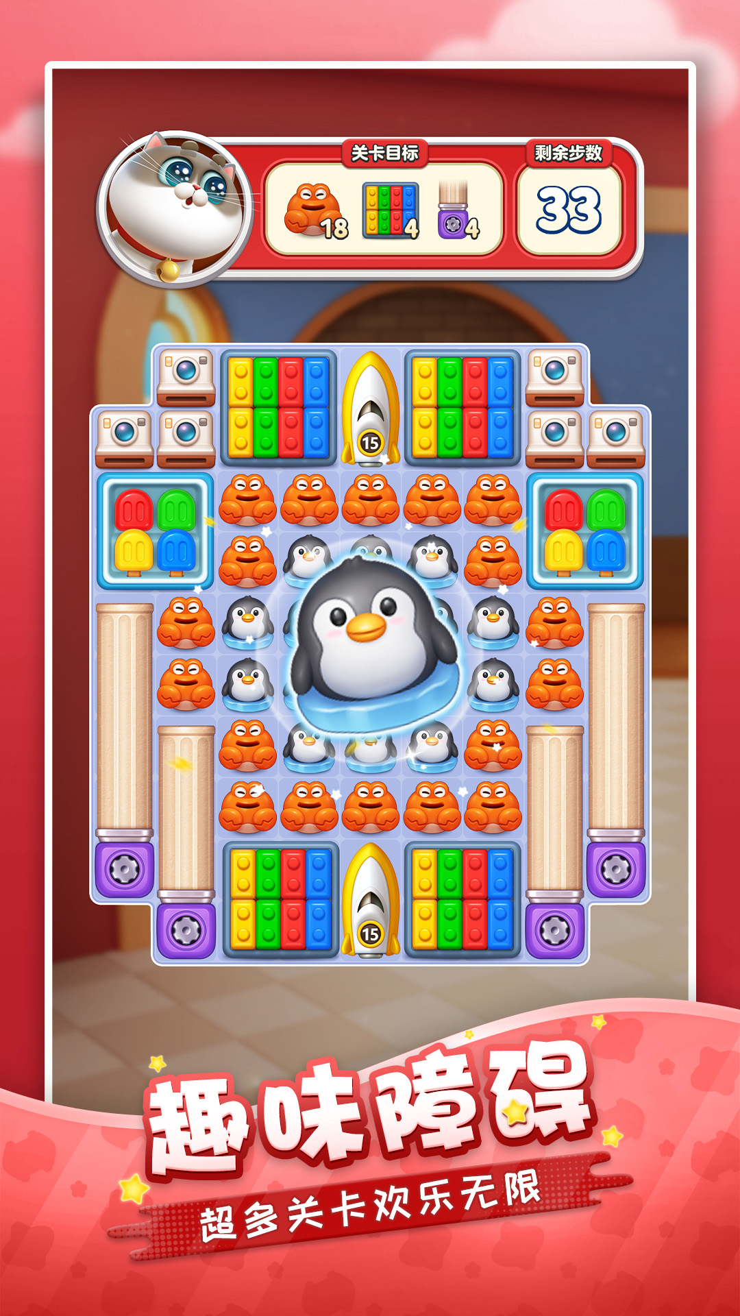 《假日乐消消》头牌心灵理疗师是一只名叫毛毛的猫咪,无论闯关还是建造,它都陪伴左右~