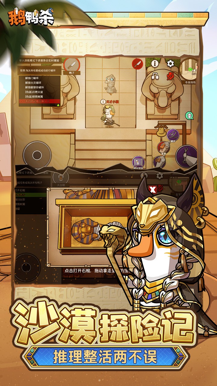 鹅鸭杀手游是一款基于经典端游改编、正版授权的多人在线社交推理游戏。玩家将化身鹅、鸭或中立阵营角色,在太空飞船等场景中展开智慧博弈。鹅阵营需协作完成任务并揪出潜伏者,鸭阵营则通过暗杀与伪装制造混乱,中立角色需达成独立目标。经典角色技能、紧急会议辩论、地图机关互动等核心玩法悉数保留。在此基础上,公测版本带来了全新的火鸟节场景主城和专属个人岛,还有丰富的娱乐模式与全新角色扩展,以及针对语音系统的全面优化。不仅玩法更有趣,整体体验也更加友好易上手。快拉上你的好友一起趣味推理、快乐整活吧。