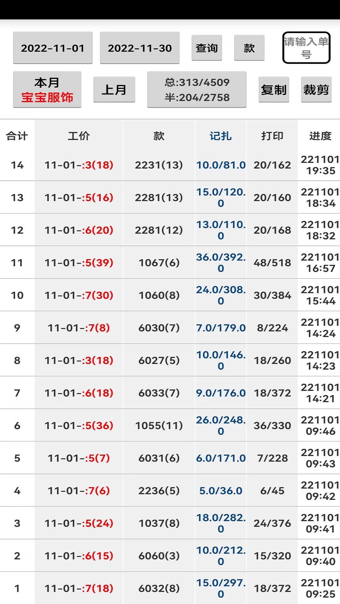 订单录入,工序输入,扫码记工,进度查询,查询款式颜色尺码,录入员工个人信息,扫码获得权限,自动回到扫码页面