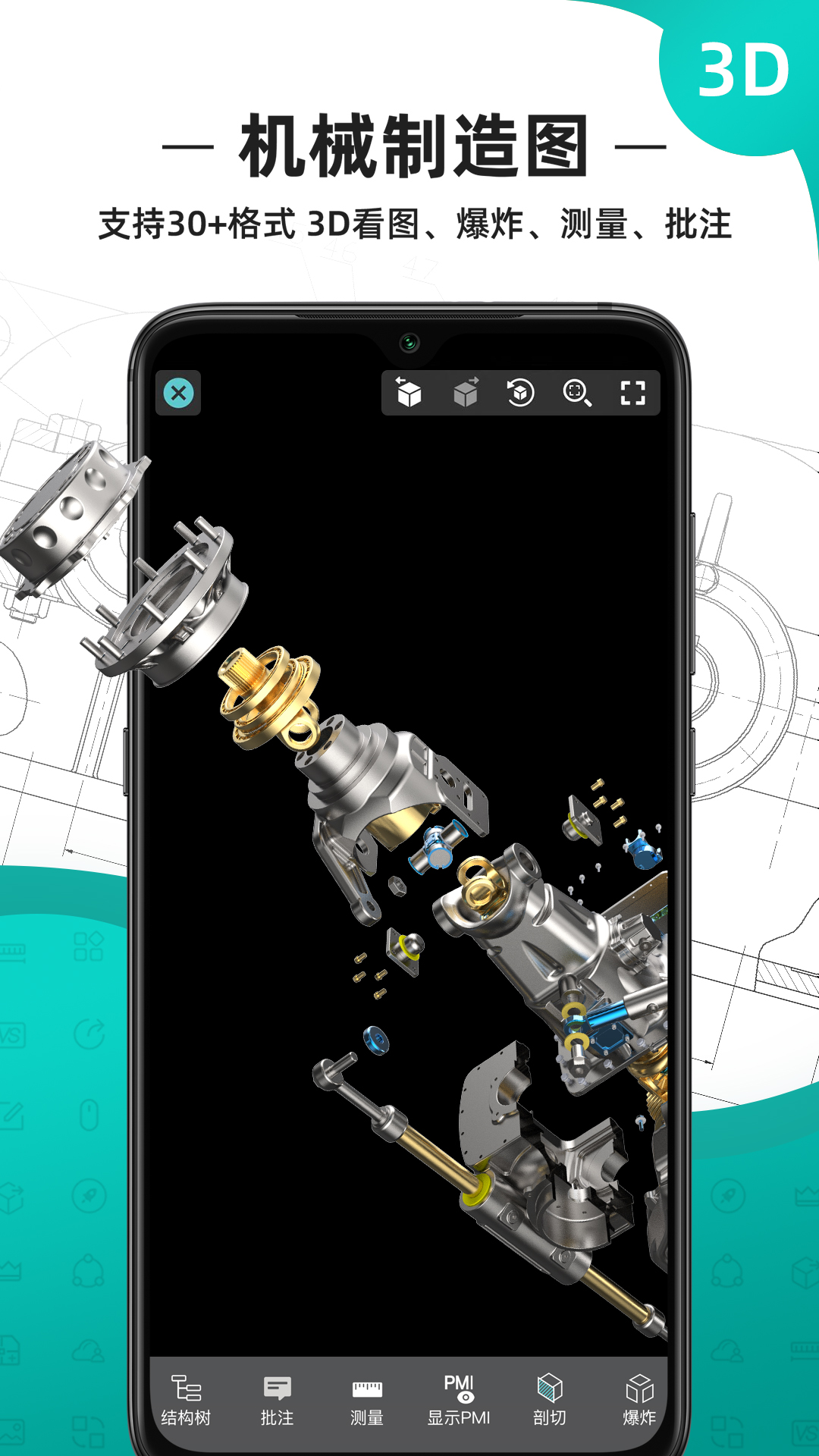CAD看图王支持DWG快速看图绘图、机械制造三维模型看图测量、批注标注、编辑制图、浏览PDF,累计用户1亿+。支持AutoCAD、浩辰CAD、天正、BIM、SolidWorks、NX、CATIA、Pro/E、Revit等二三维图纸,全面兼容天正T20V10,CAD图纸原生显示不失真,专业Fonts字体解析告别文字乱码;支持建筑、机械、制造设计软件.rvt/.sldprt/.sldasm/.asm/.prt等30+格式三维图纸浏览、结构树、剖切、爆炸,三维测量、批注与PMI显隐;DWG看图编辑、测量标注、批注、图块统计、文字查找替换、PDF与CAD格式转换等,微信、QQ、邮箱、钉钉随时分发CAD图纸,实现手机、平板和电脑三端同步。