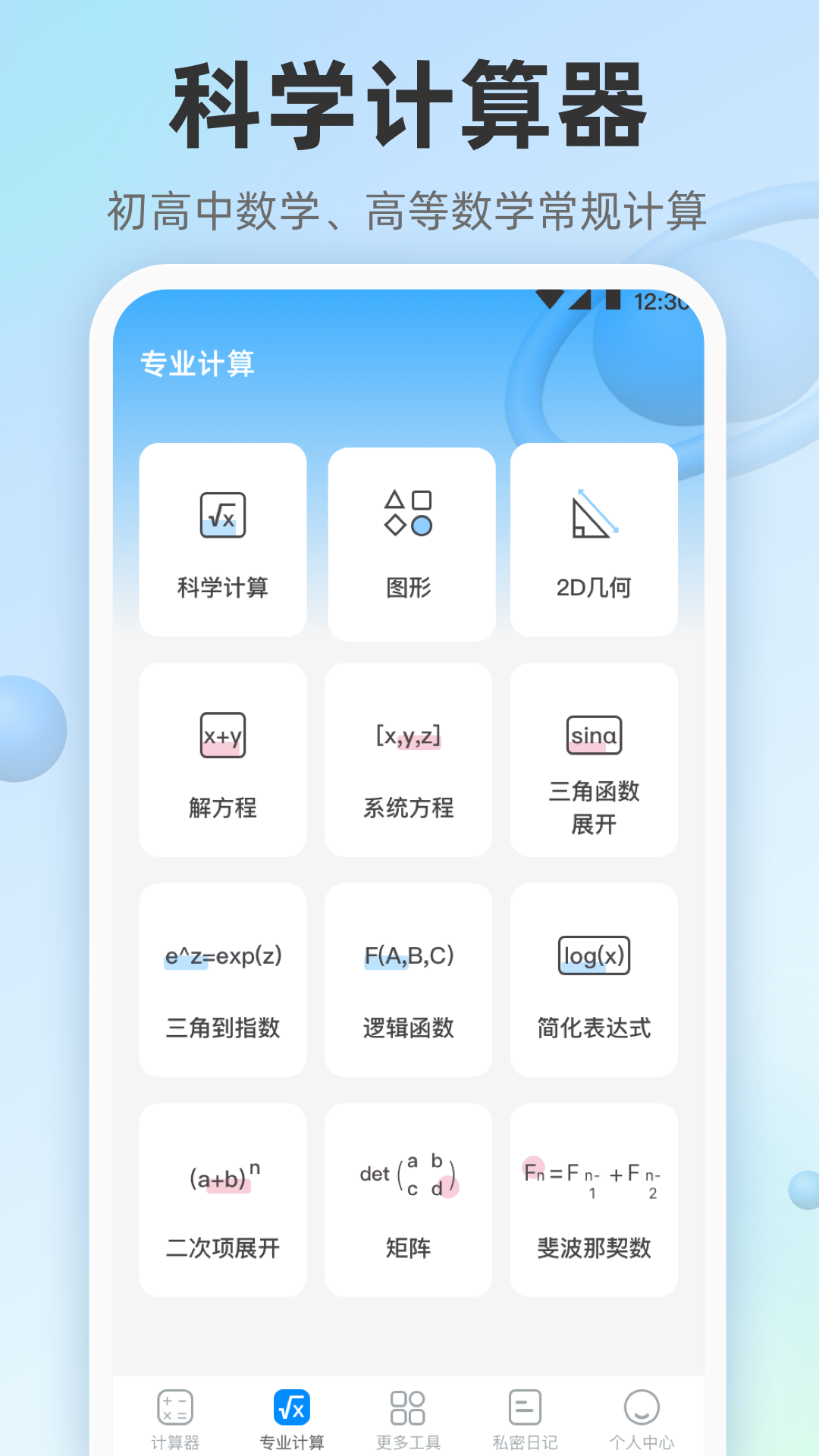 一款专业的科学计算器软件,包含科学计算器、图形计算器、几何计算器、解方程计算器、三角函数计算器、逻辑函数、简化表达式、二项式展开、矩阵等多种专业的计算器和分析工具,是一款专业计算器。