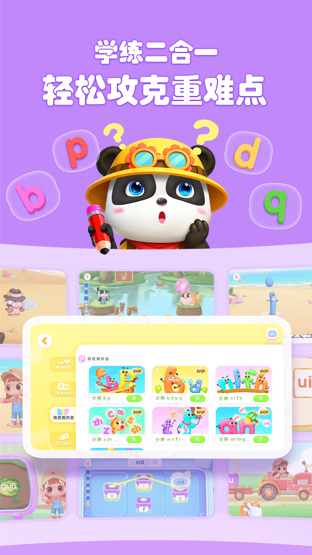 【宝宝巴士拼音】打造870+互动环节、51集原创拼音动画和15首拼音儿歌,点燃儿童学拼音的兴趣。