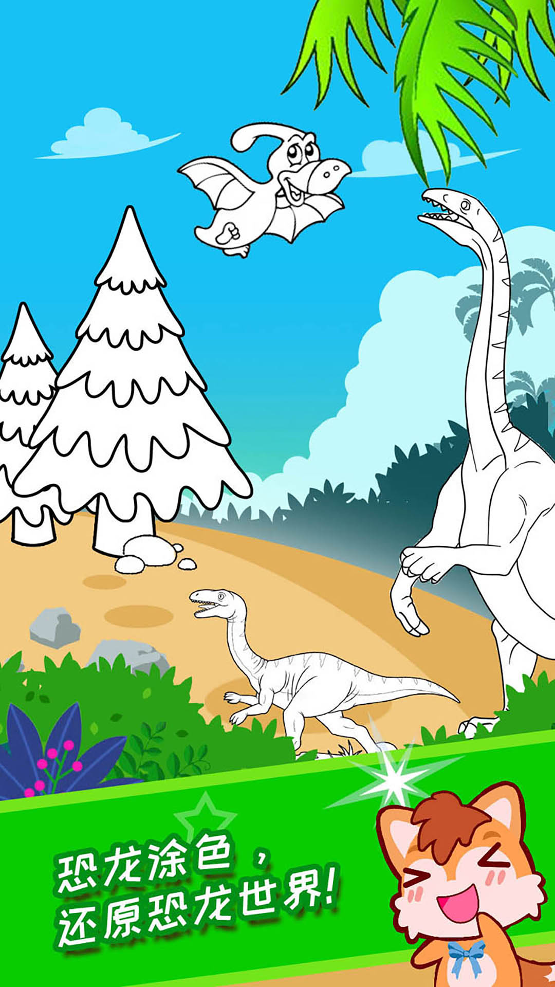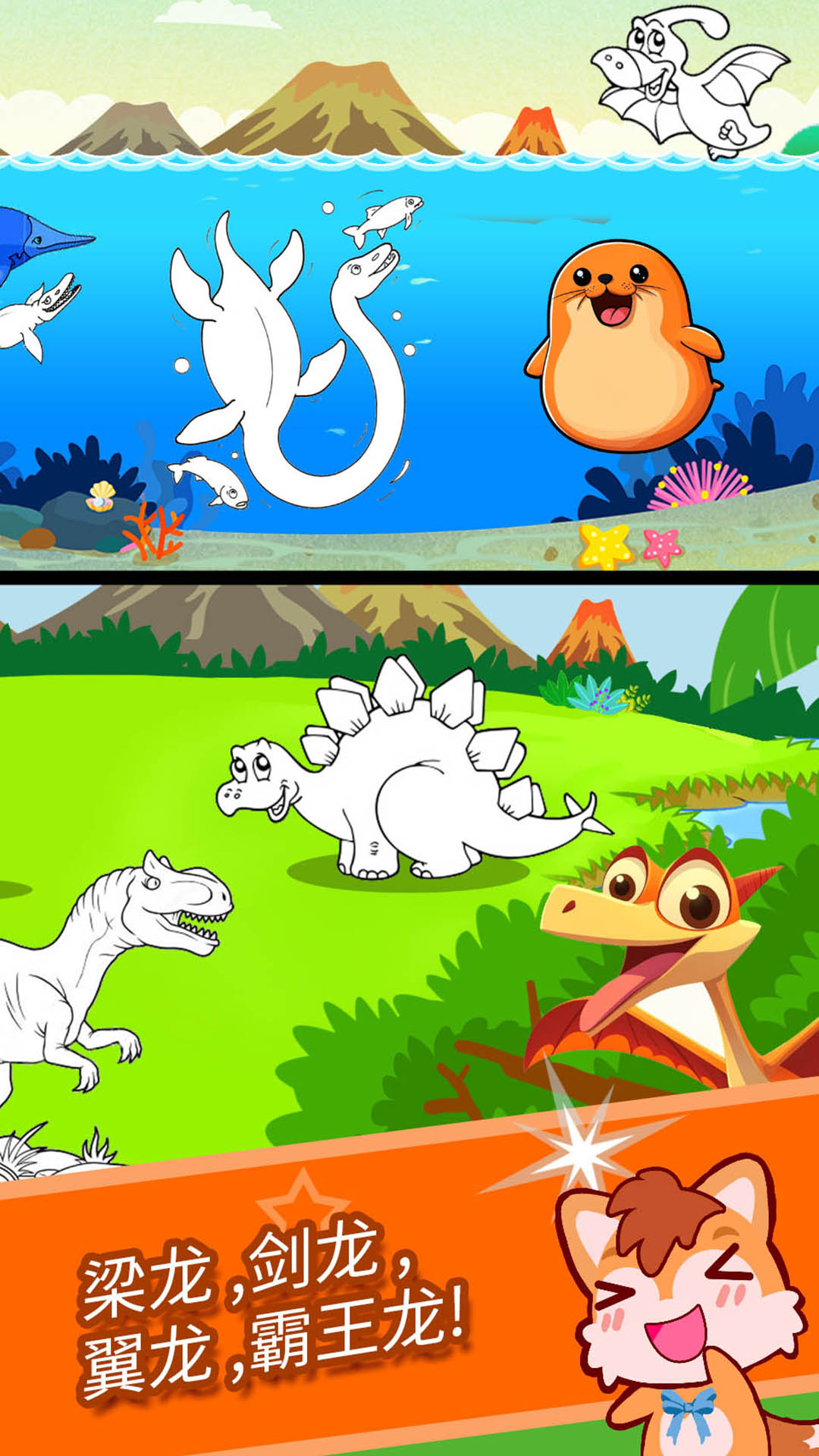2、丰富轮廓图片进行涂色绘画,包含各种各样的恐龙;