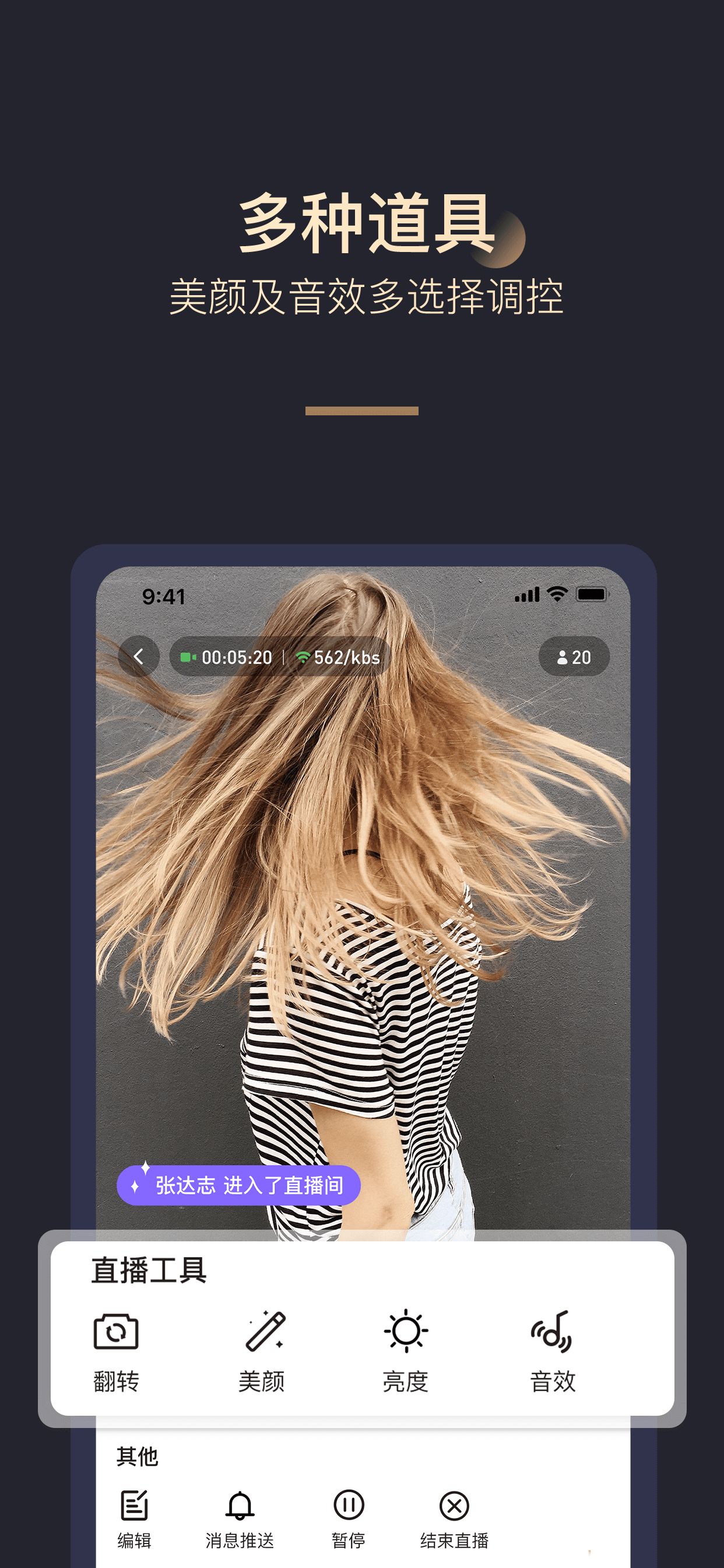 打通APP与微信的端口,让沉淀在你微信个人号、公众号的粉丝高效导流至直播间,集中化运营产出更高效益; 同时支持接入微信服务号, 通过服务号对直播间用户进行开播推送,随时随地调动用户积极观看。