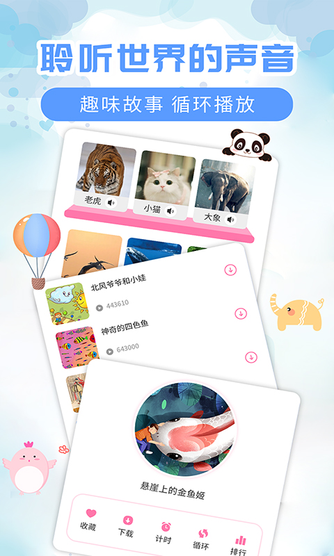 热门好听的儿歌童谣、哄睡音乐,经典有趣的睡前故事、安徒生童话故事、成语启蒙故事,还有古诗词朗诵、三十六计故事、十万个为什么等丰富的有声内容,给孩子更多想象的空间,激发宝宝求知探索的欲望。