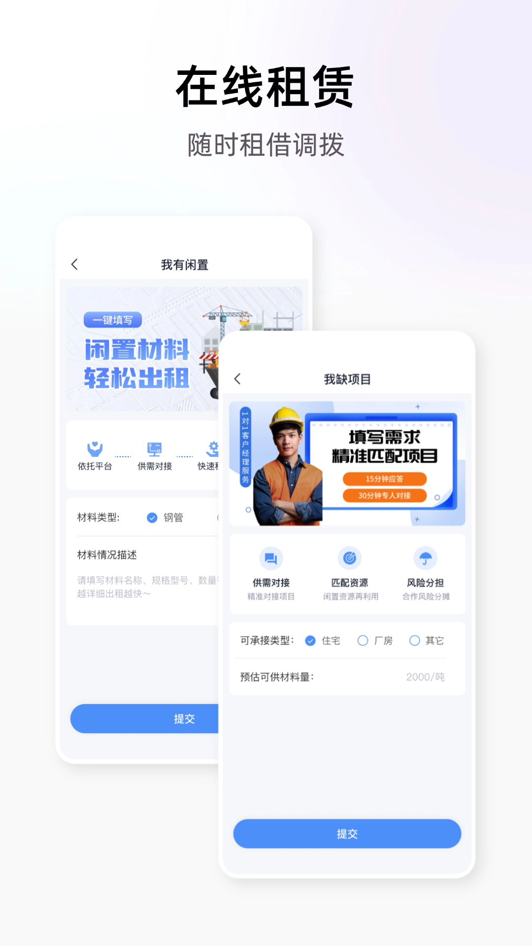 平台服务:材料租赁、签约供料、合伙人、行业圈。
