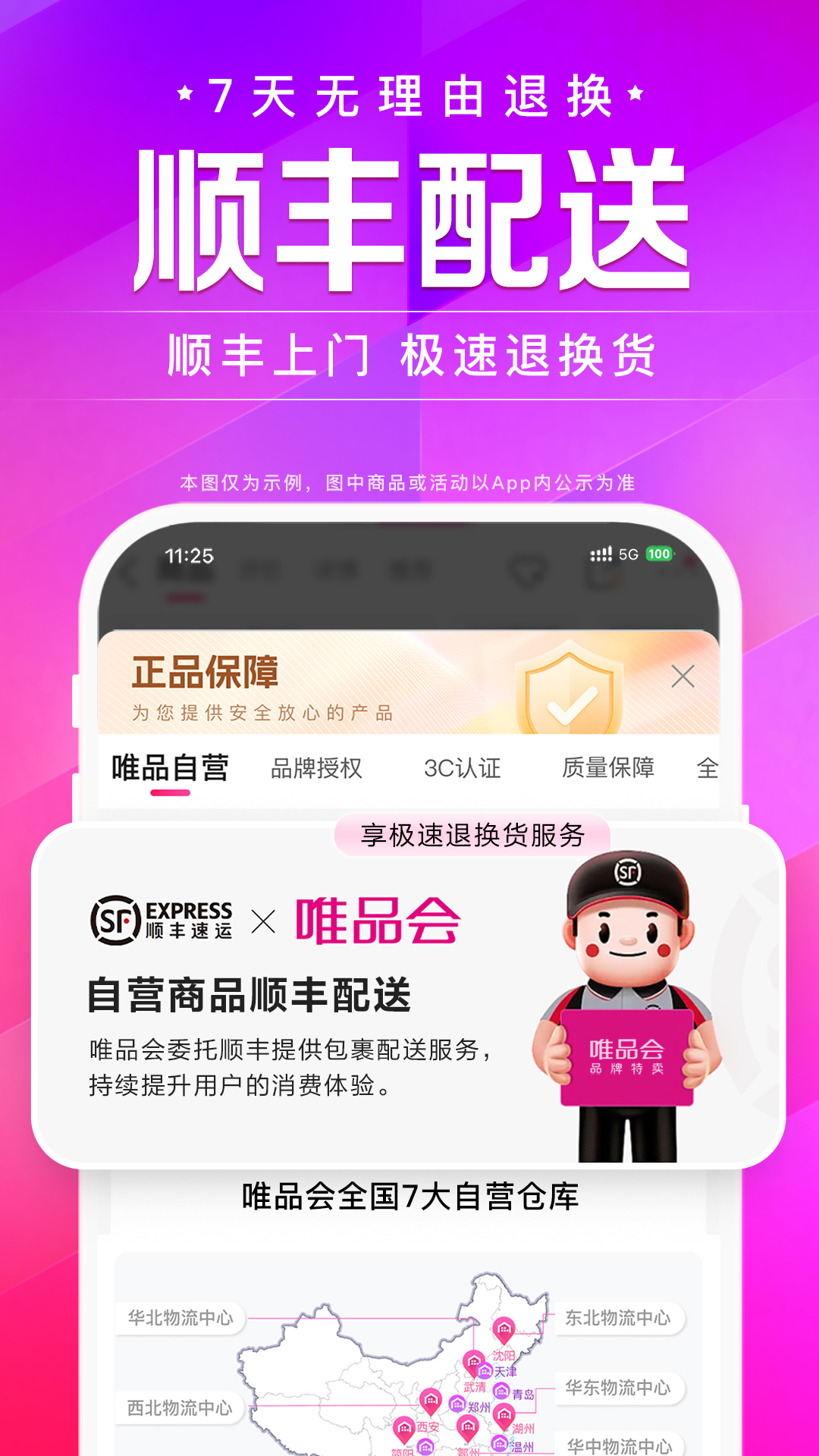 7天无理由退货,自营商品免费上门收件(自行寄回返10元唯品币);
