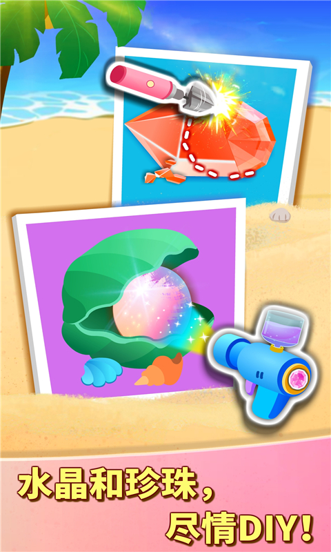 去沙滩寻找贝壳,取出珍珠,染上红的绿的各种颜色,搭配蝴蝶结串成项链。小公主佩戴完成,瞬间闪耀全场,美美哒!
