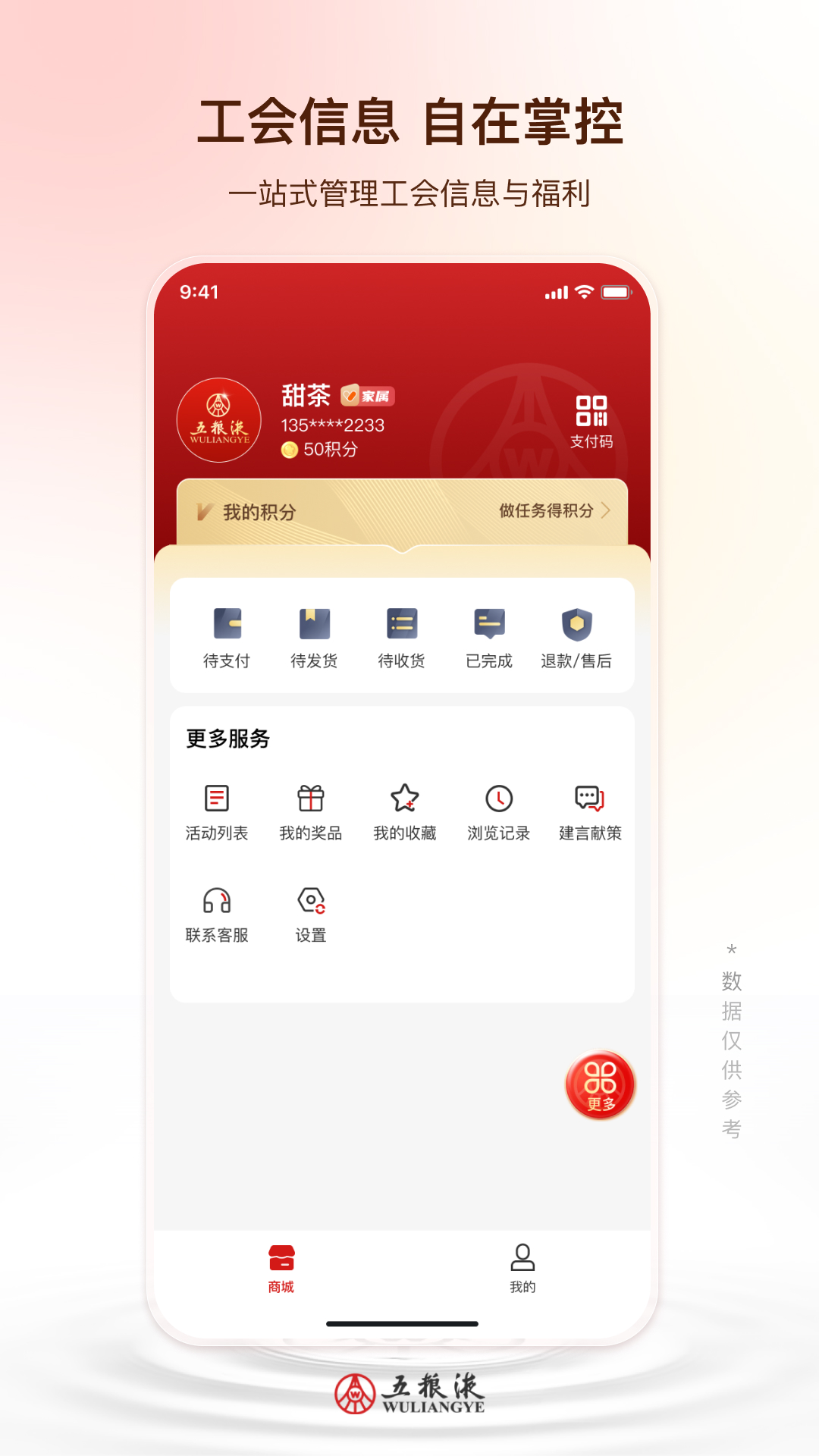 五粮液家园是五粮液集团工会打造的数字工会平台,是工会开展普惠、帮扶、法律援助等职能工作的在线平台。员工阳光福利可以通过APP第三方支付功能,在宜宾和成都等地指定健康场所扫码,去中间采购环节,由职工自主消费实物提货或兑换服务。平台依托大数据阳光透明管理,有效杜绝微腐败,同时极大提升五粮液广大职工幸福感和获得感!平台为集团和广大职工构建了互联互通的高频的空中桥梁!