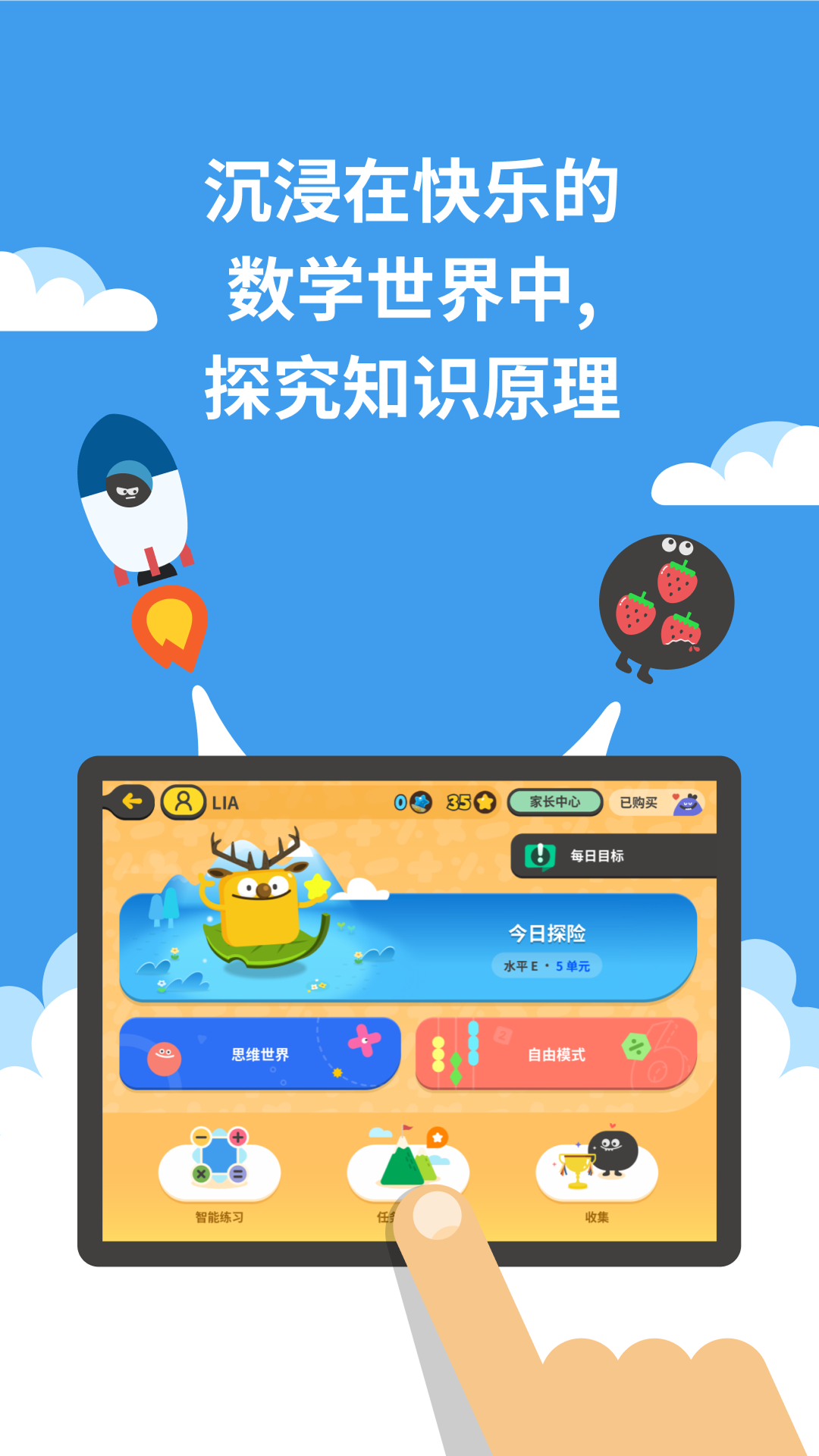 以其独特的游戏化设计,探究式学习和主动发现知识的引导方式,帮助所有儿童都能够在没有家长的陪同下独立进行基础数学启蒙和思维练习成长。