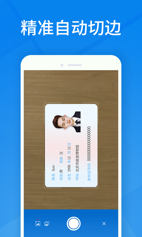 身份证安全:本App不存储任何身份证图片,图片上传识别经过加密处理,无须担心隐私。