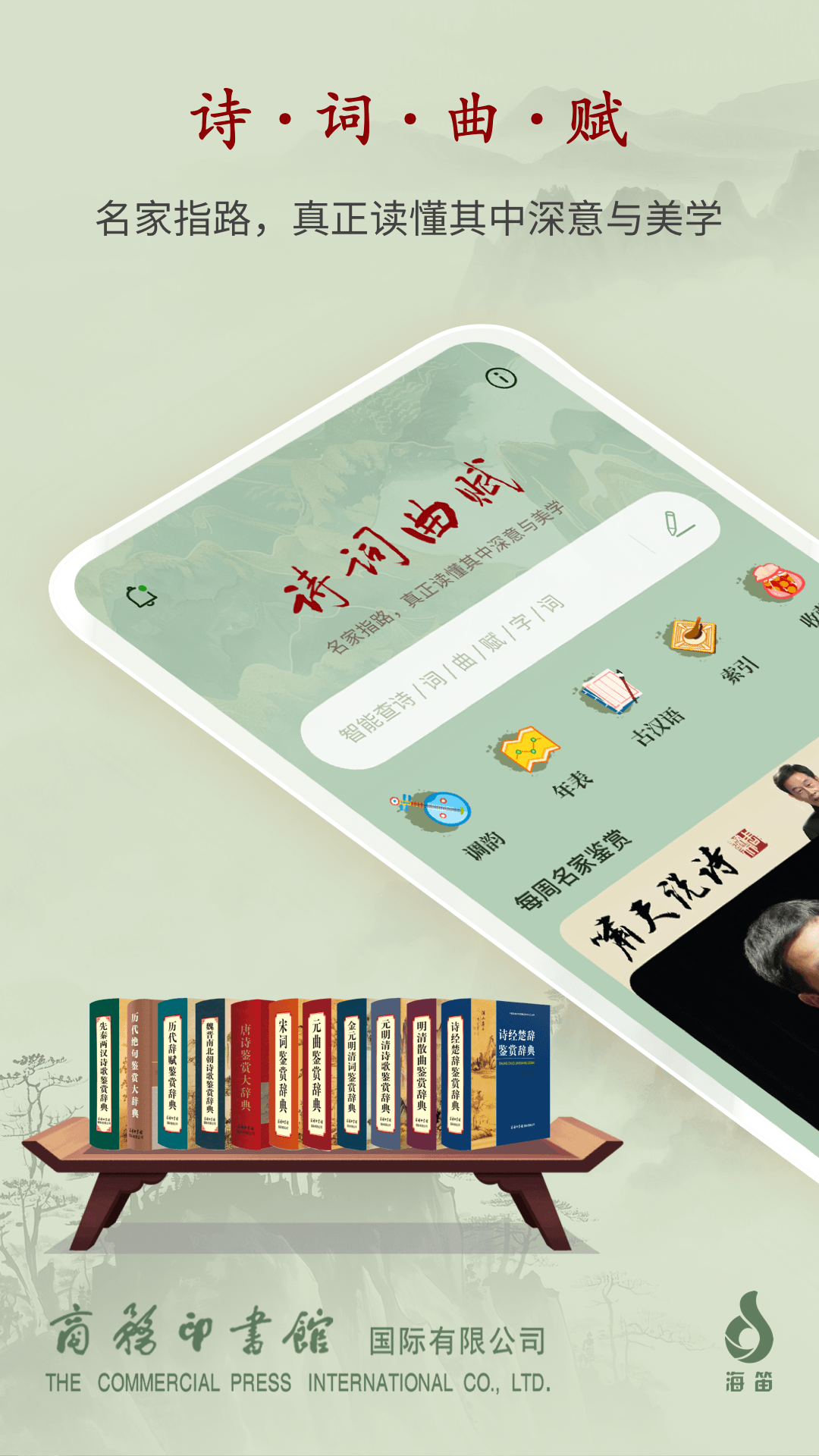 中国辞书出版重镇—商务印书馆(国际)联合海笛重磅出品。本应用内容均源自已发行的权威鉴赏工具书与诗词知识读物,每篇赏析由资深学者撰写、审校,兼具权威性、严谨性与可信度。?