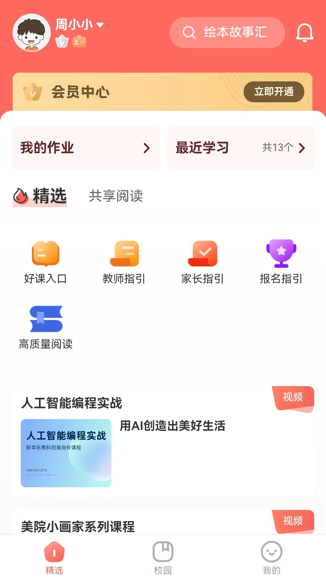新华乐育学生端为学生提供阅读、课程等服务,主要解决阅读和课程的学习即提供整体学习解决方案。