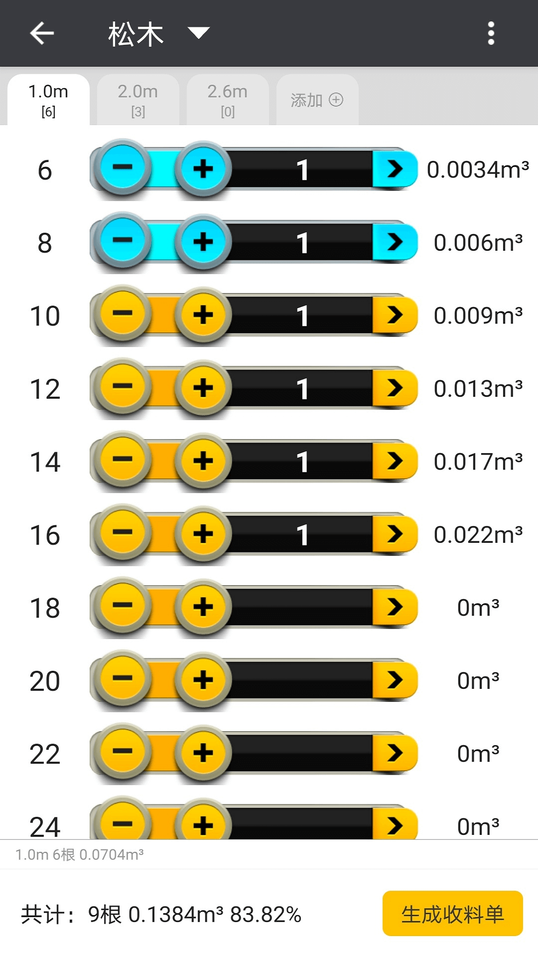 4.自动计算材积,分树种长度计算,结果一目了然。
