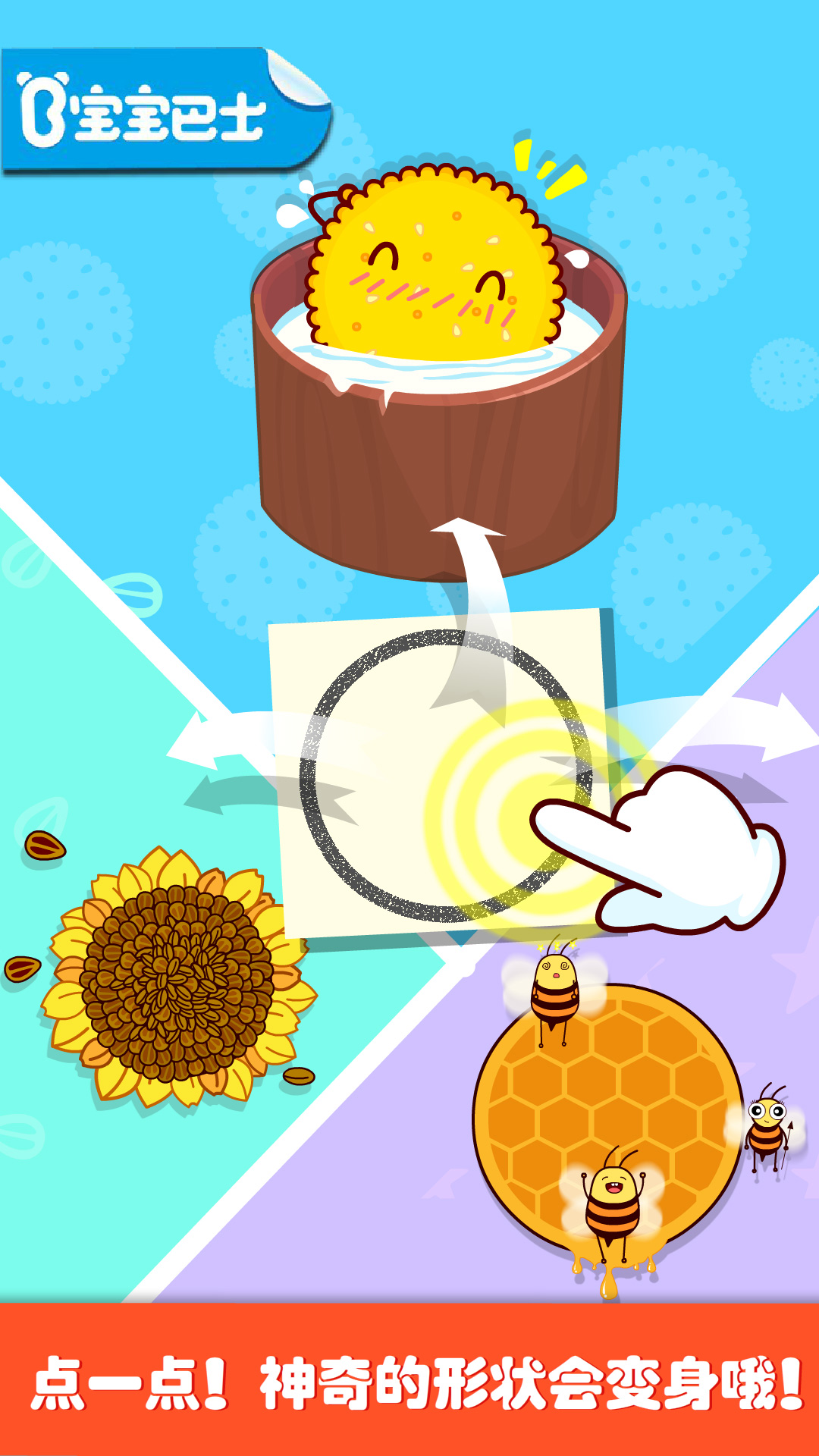 唱歌的花洒、变魔术的火龙果、还有勤劳的蜜蜂!点击屏幕,邀请小动物们一起玩耍吧!