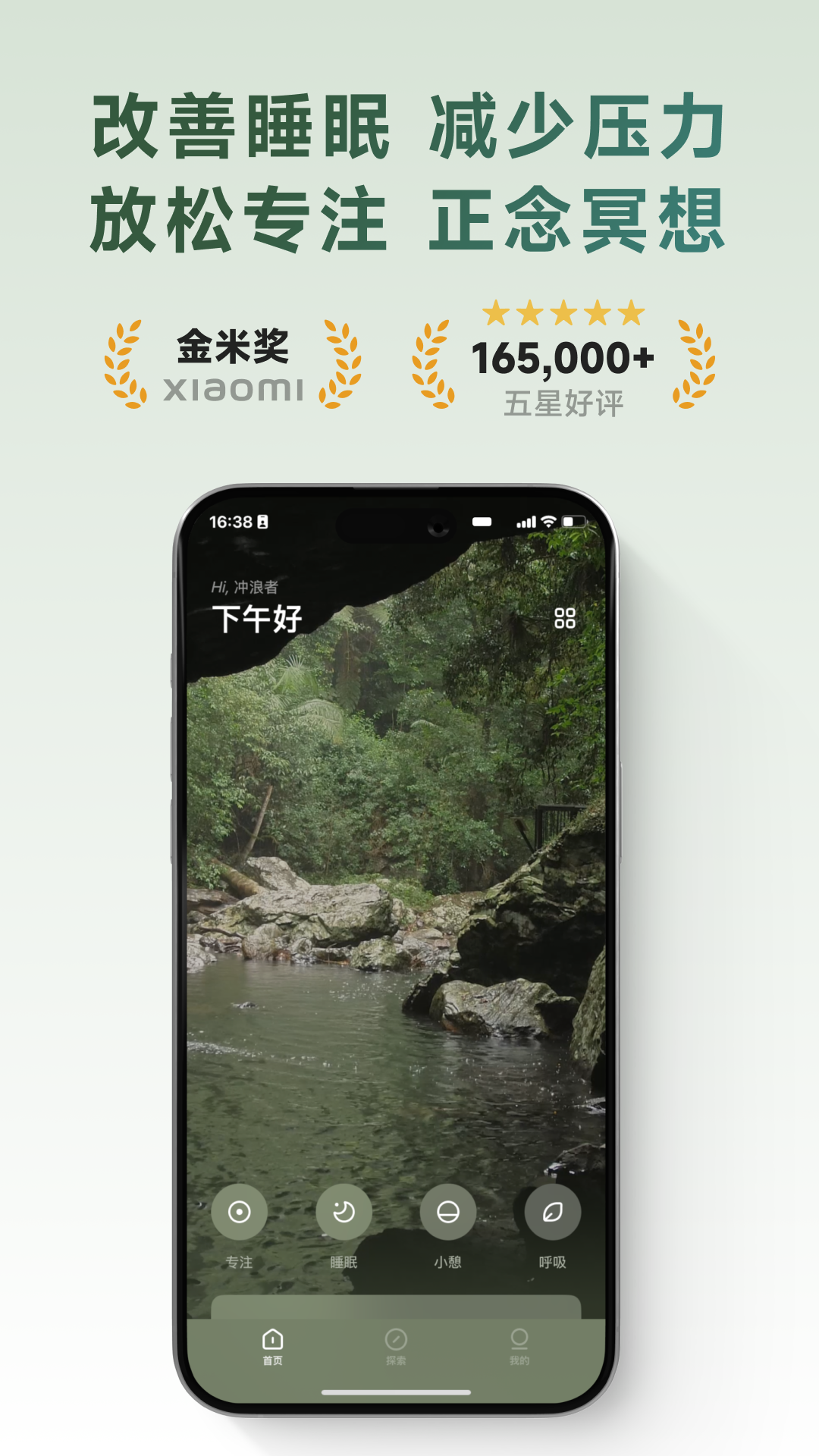 潮汐 App,一个帮你回归内心的正念空间。曽获得金米奖,帮助全球超过 2500 万用户睡得更好、焦虑更少,重新探索和定义一种回归内心、平静自然的生活方式。