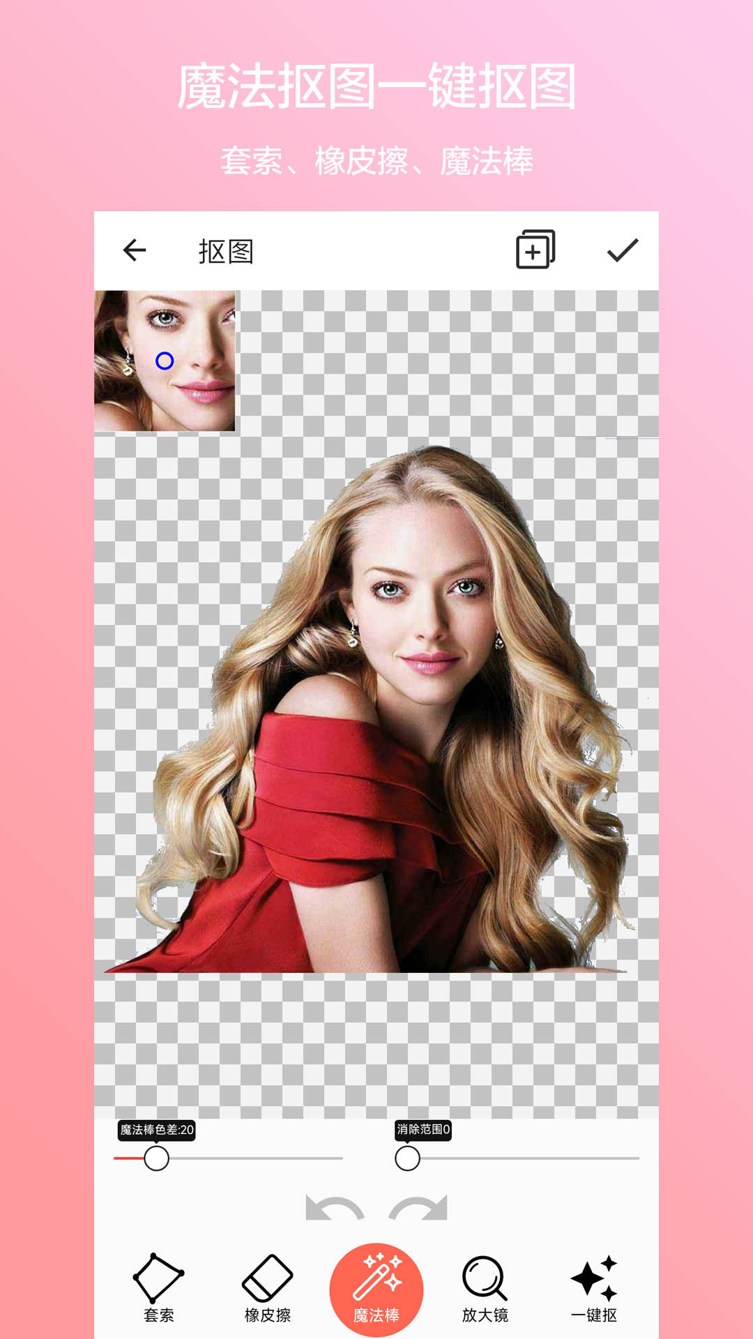 不仅可以抠图哦,还可以对图片进行美图ps,多张图片进行合图。对人像图片瘦脸,也就是p图效果。
