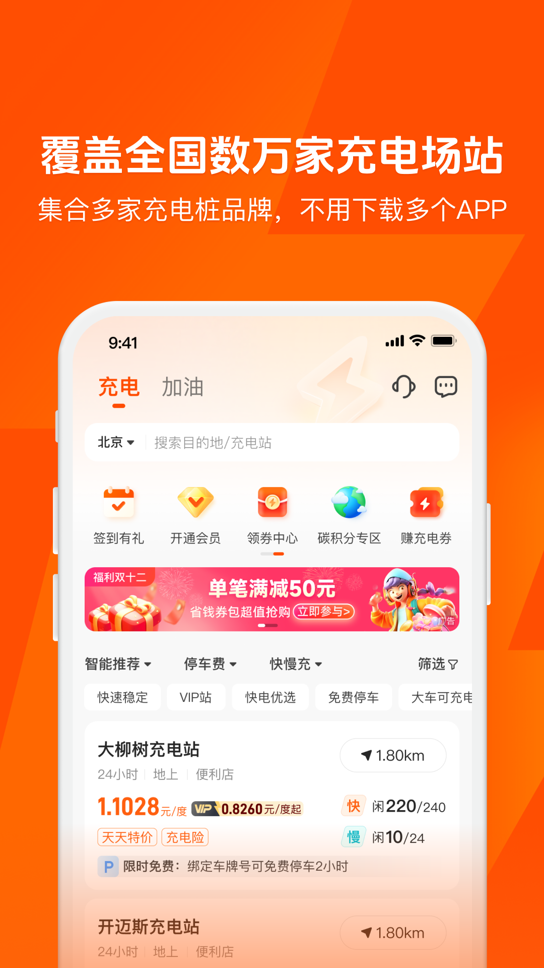 新能源汽车充电就用快电,一键找到就近好桩,注册享受更多权益,场站配套设施提前看,覆盖全国数万家充电场站,集合市场多家充电桩品牌