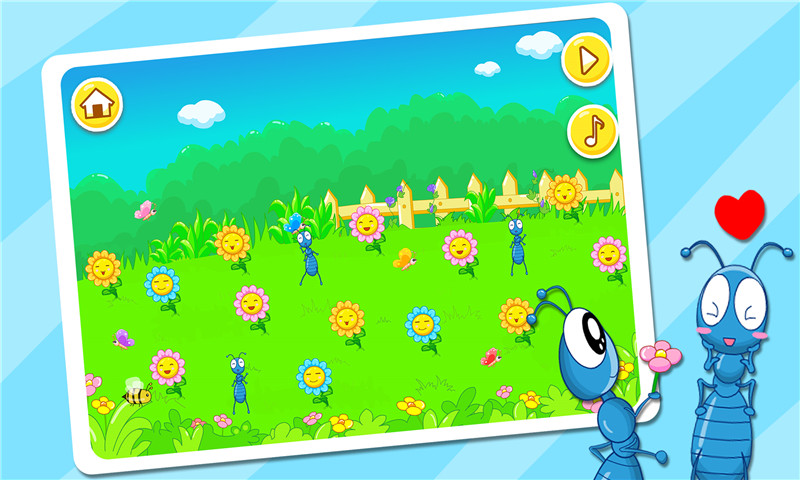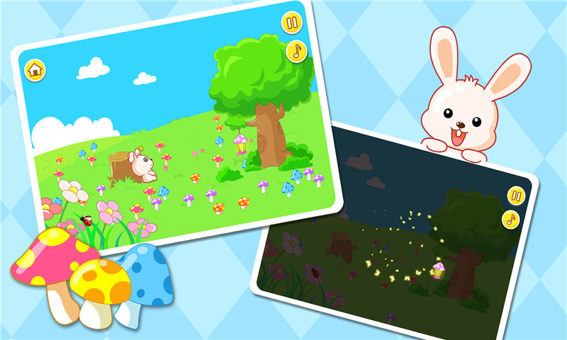 宝宝在倾听音乐的同时,在场景中,可点击草地会有花朵盛开,也可动手种蘑菇,摘水果,吹泡泡,放飞蒲公英等等,宝宝可以发挥创意创造自己的花圃果园... ...?