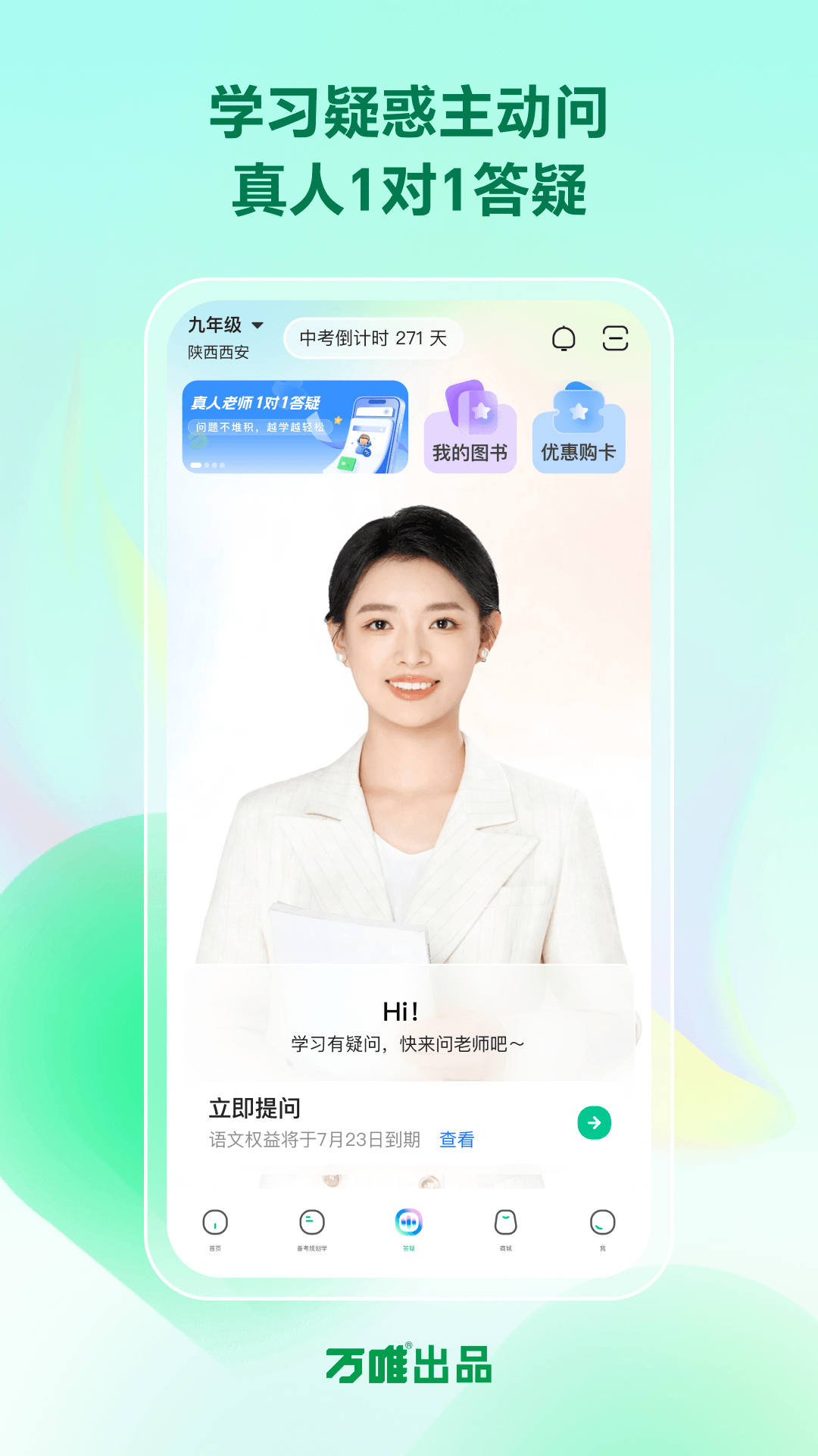 万唯出品,专注个性化学习,真人老师1对1答疑,不只解惑,更授学习方法,培养学生自主学习能力。