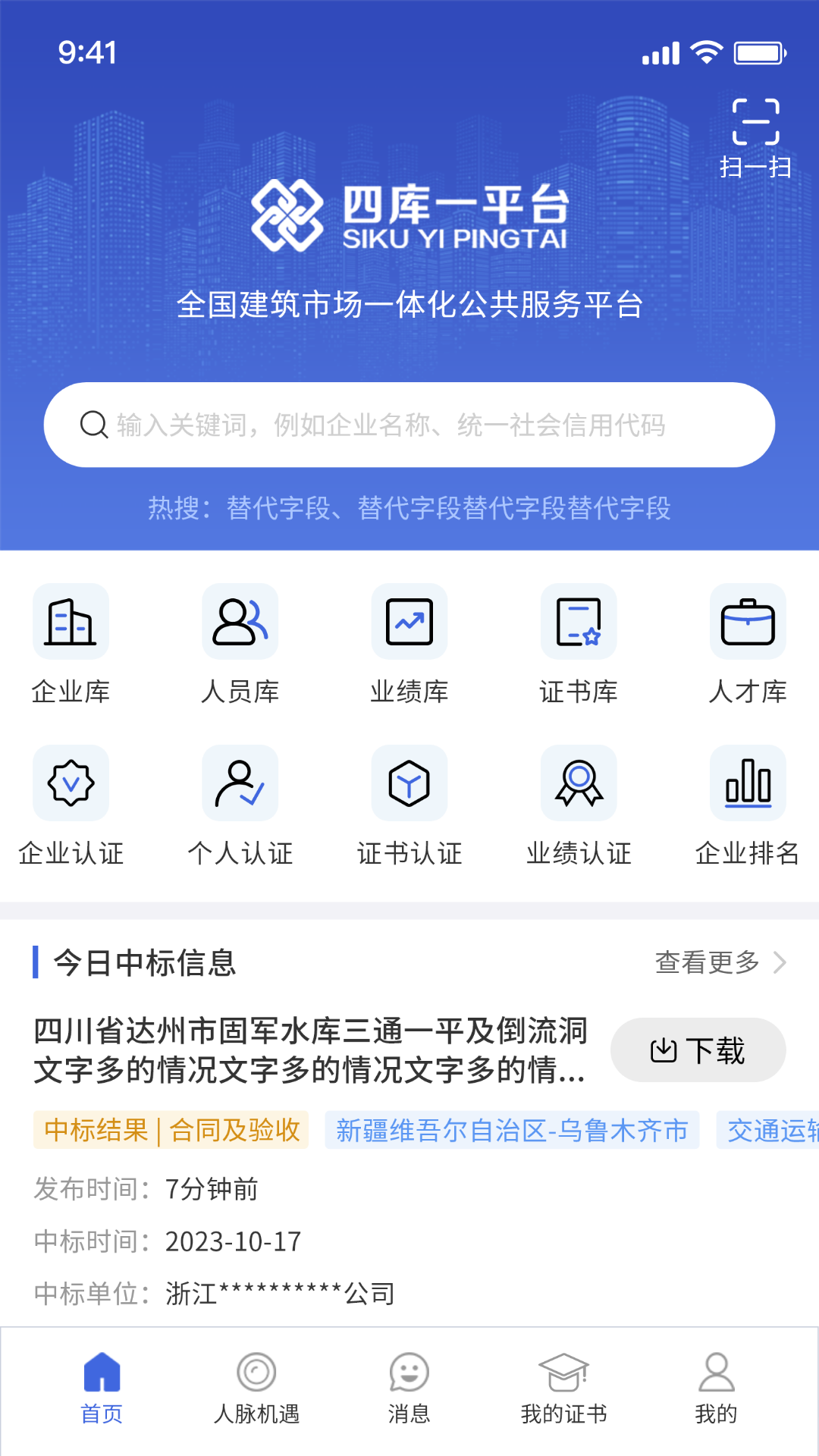 四库一平台致力打造全国建筑产业综合服务平台,共建中国建筑行业互联互通、资源共享、资本共享的互助平台,实现全社会共享资源,资本和财富的盛宴。