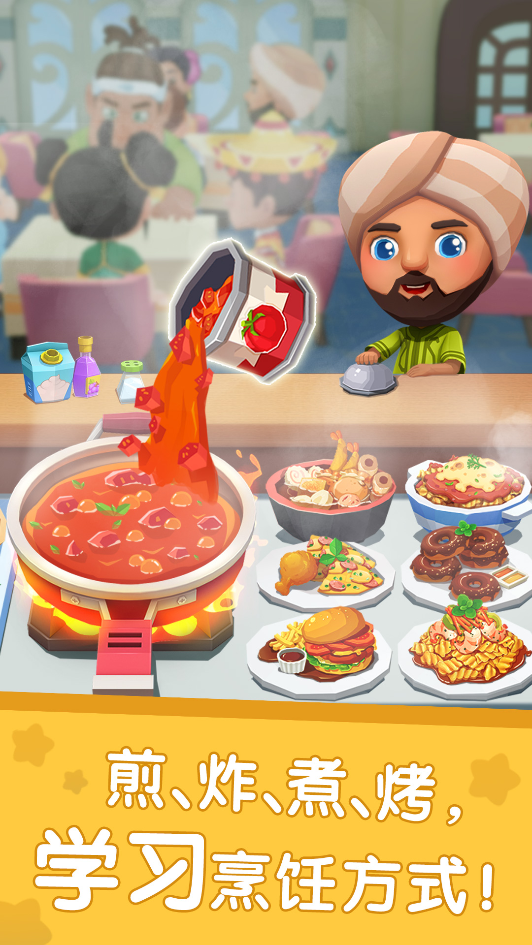 煎、炸、切、烤、煮、蒸齐上阵,缤纷美食随心做。解锁新菜品,还能设计特色美食菜肴。