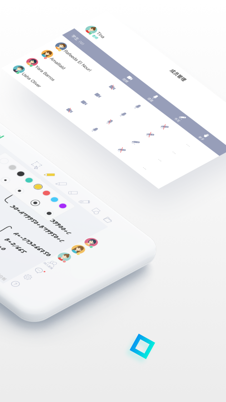 6、权限管理更强大。系统内含管理功能。讨论中设置权限控制,非创建者需举手同意后,才能进行发言互动。同时,还有强制下线功能,做到更强大的权限管理功能。
