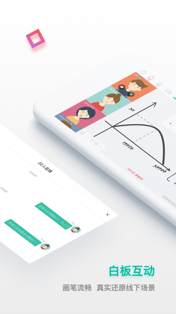 2、互动讨论书写白板。支持多人同时使用画笔、输入文字、上传图片,支持多页滑动无限使用。随时写随时擦,简单易上手。