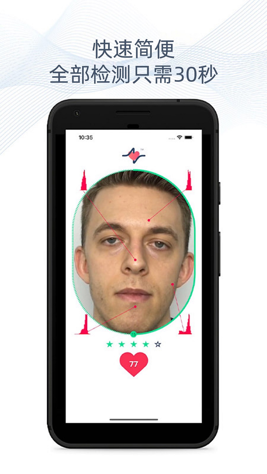 ?快速----实时心率数据仅需5秒,全面健康评估仅需30秒。