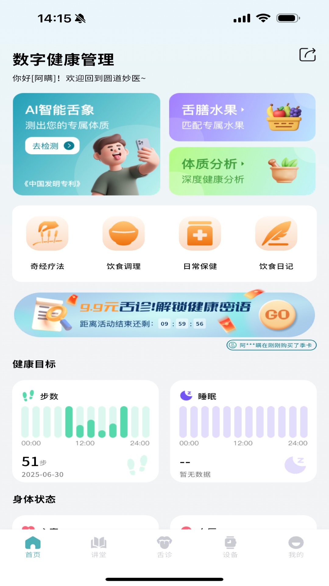 圆道妙医APP是您的智能中医健康助手,融合传统中医与现代科技,提供以下核心功能:
