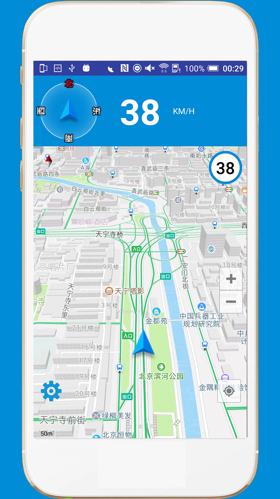 7、智能罗盘:主界面使用罗盘显示当前的行驶方向,非常直观。