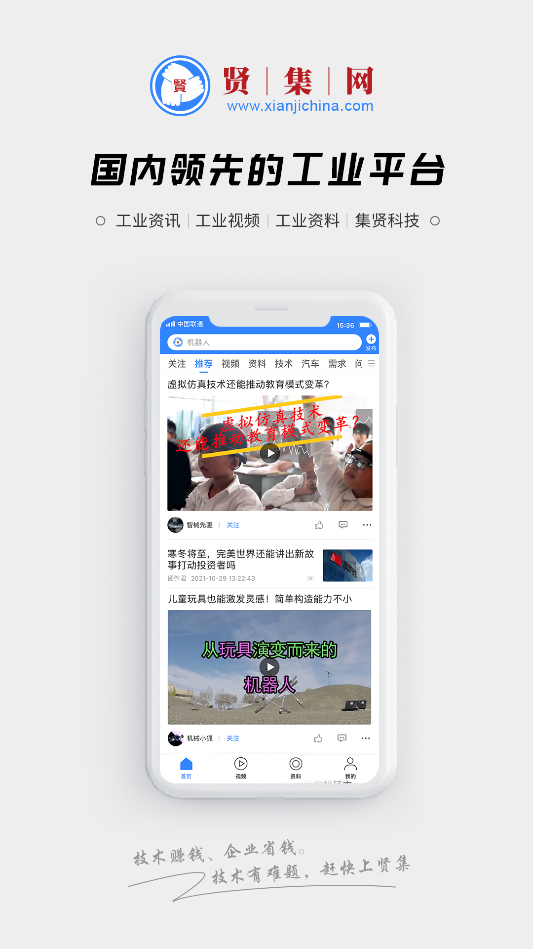 贤集APP功能:工业资讯、行业技术新闻、产品研发信息头条、产品交易分析等。随时随地获取工业新闻资讯.一键参与,分享热门工作技术活动经验.