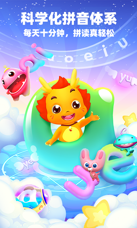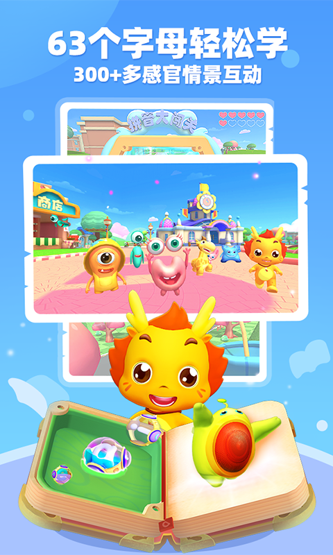 小伴龙拼音App根据2-8岁儿童认知发展规律精心设计。在趣味故事情境中,好玩的游戏互动中,帮助孩子快乐学拼音,克服拼音启蒙过程中发音难、拼读难、记音形难的问题!快和3D形象小伴龙一起,进入拼音小镇,开启拼音学习之路,63个精心设计的拼音星人等着你认识。