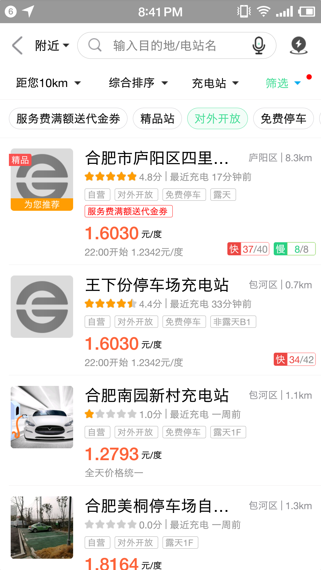 - 电站搜索:通过目的地电站搜索、收藏的电站、最近充电和附近电站,可以快速定位到要查询的充电站,且通过电站详情,能够实时掌握充电终端的使用情况。?