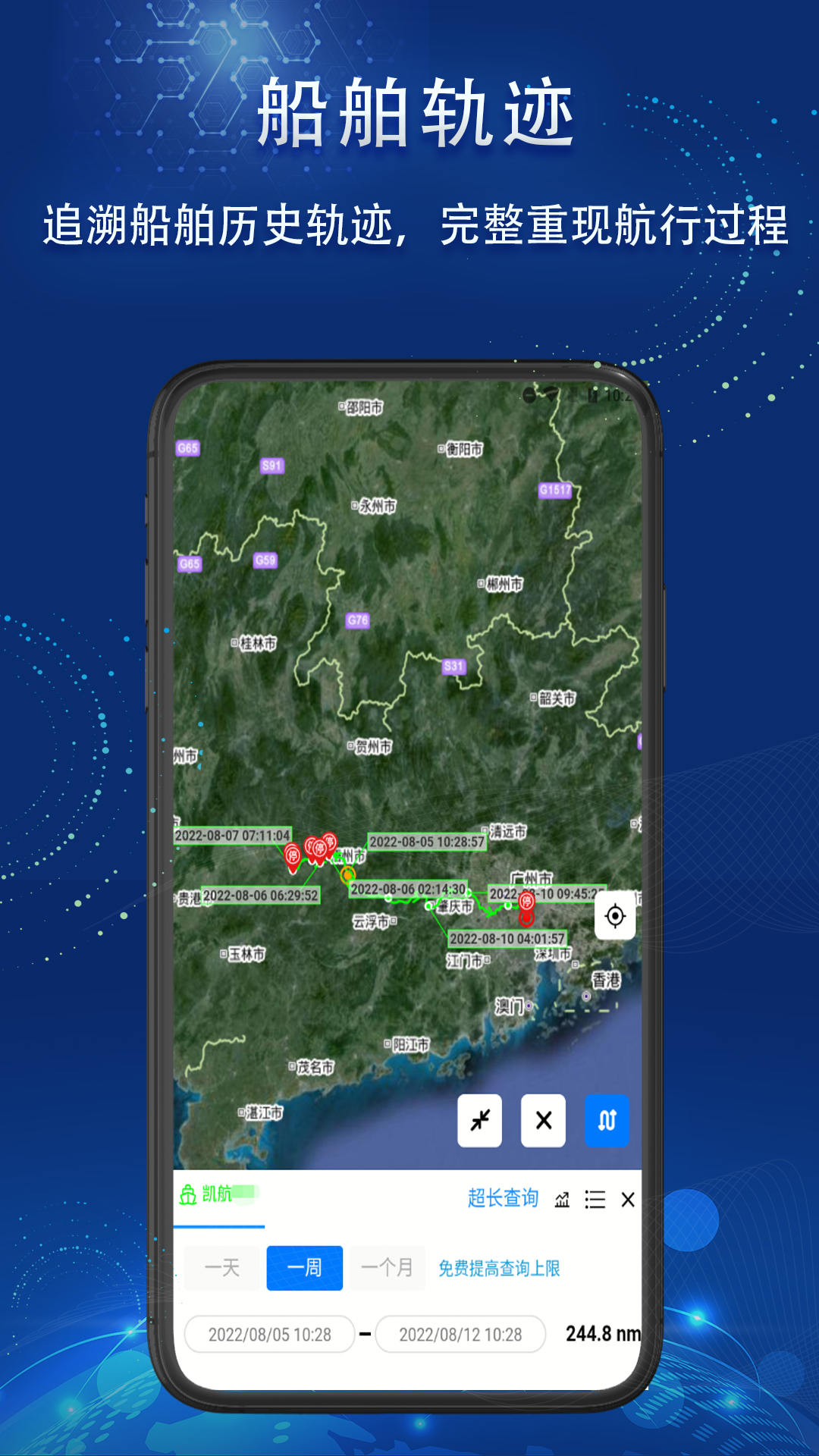 用户可以选择时间段回放船舶航行轨迹,重现船舶航行过程。