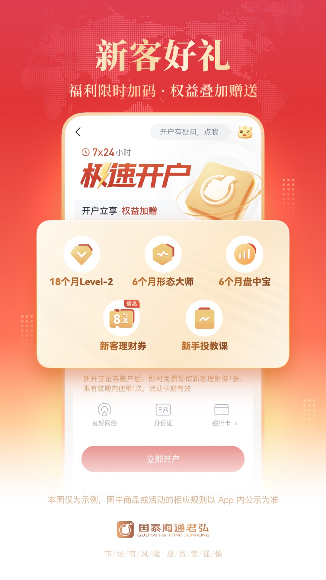 新客户通过国泰海通君弘APP开立证券账户,可获
