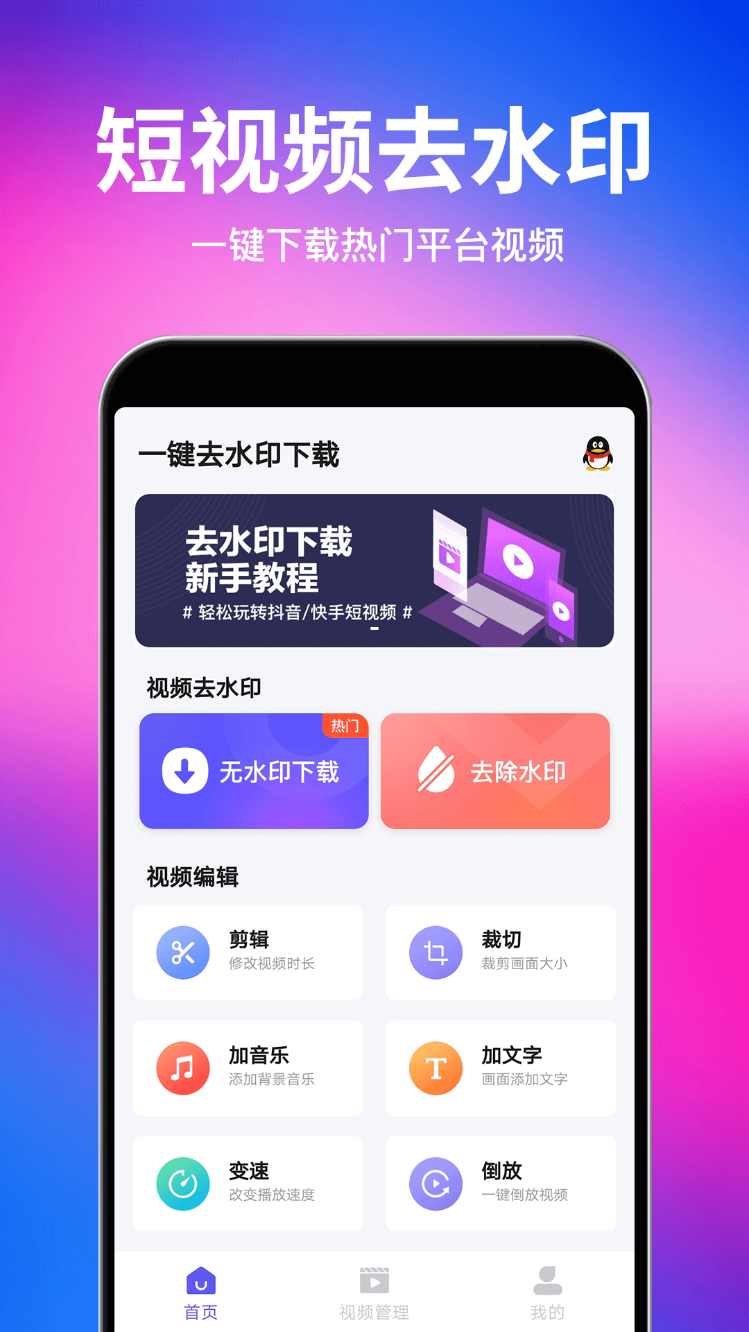 一键去水印是一款简单易用的视频去水印,内置强大的视频编辑功能,制作视频简单灵活
