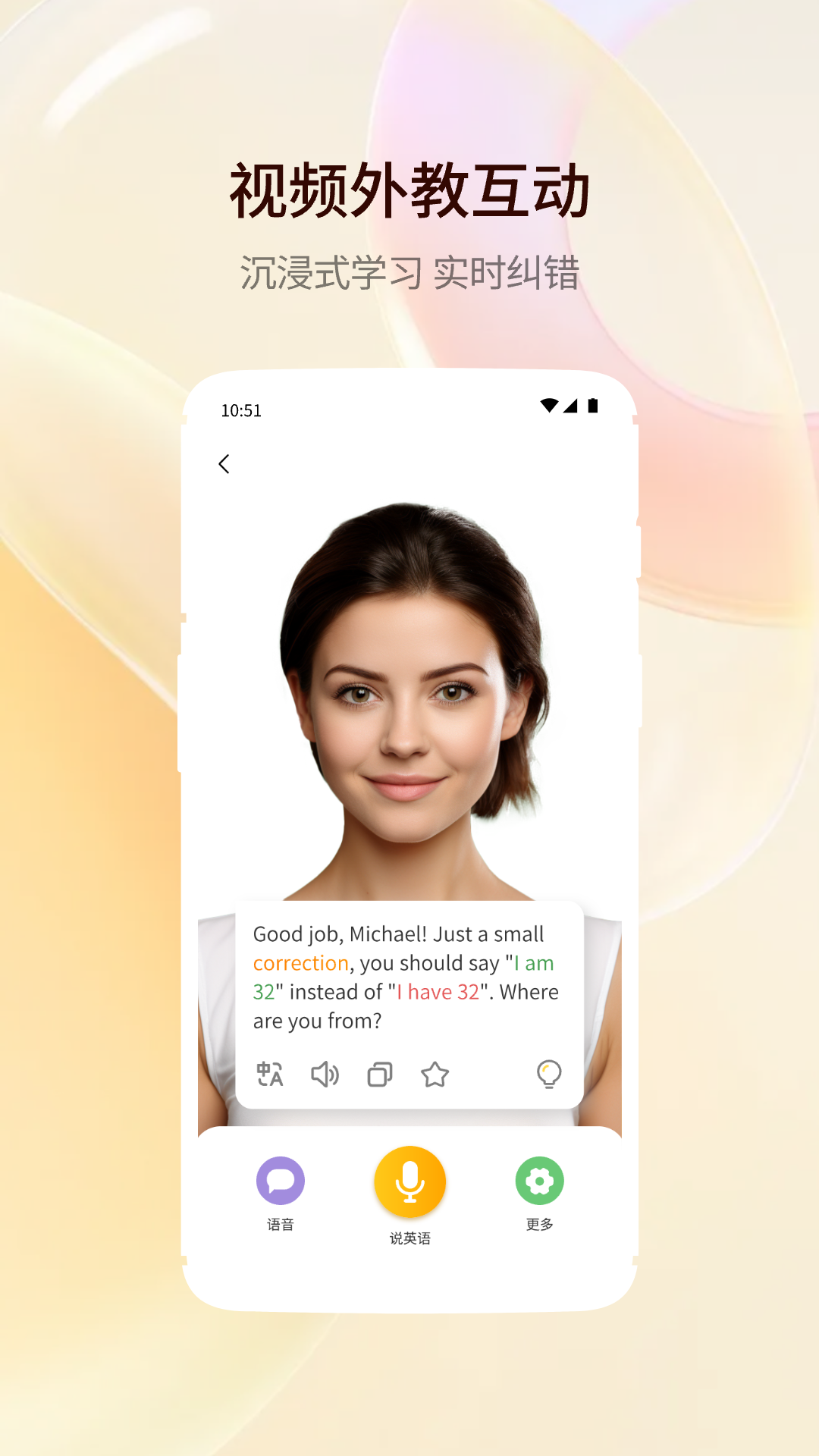 一款基于数问英语互动教学语音引擎的口语练习软件,多种口音,多种场景,语法纠错,难度适配,7*24小时全天在线,让您告别哑巴英语,告别高价私教,告别懒惰习惯。全新的每日英语课可以让您享受原汁原味的全英文口语环境的听说读写练习。快来体验全新的口语大师吧!