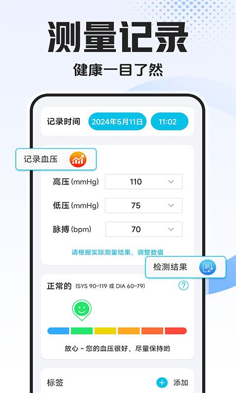 -测量并记录血压时间提醒,不担心有遗漏,养成记录血压好习惯。